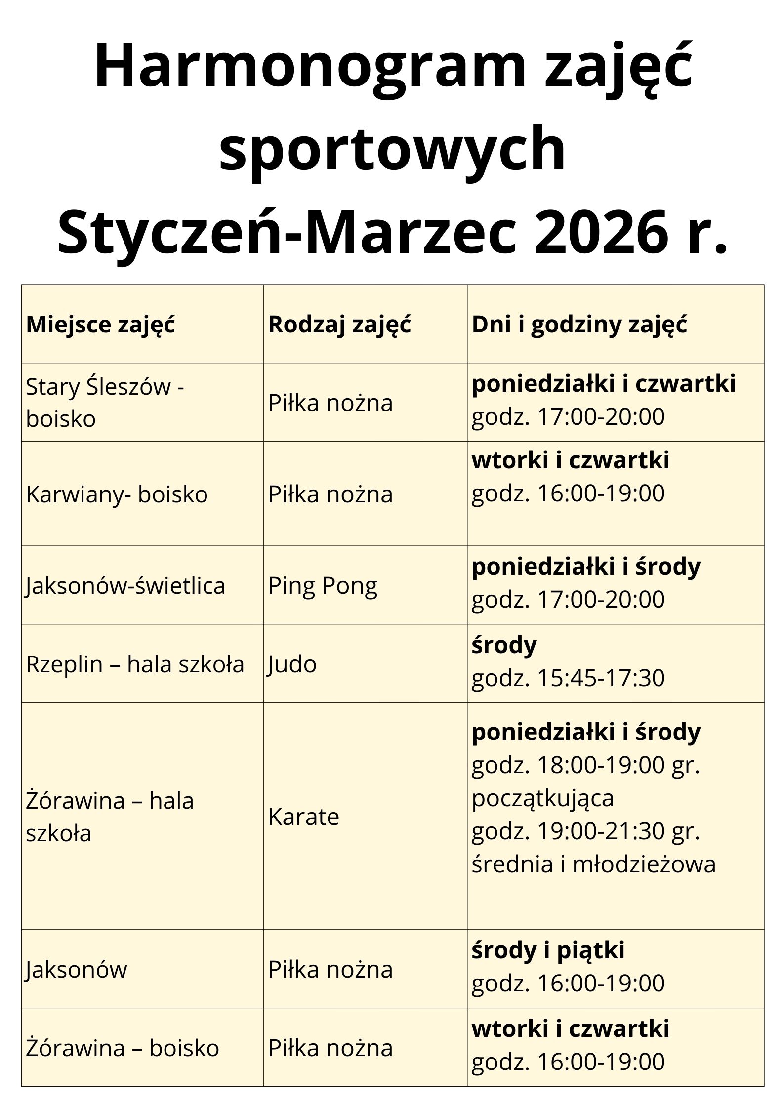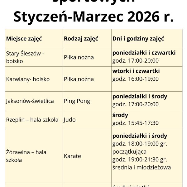 poniżej udostępniamy harmonogram nieodpłatnych zajęć sportowych dla dzieci z naszej Gminy.