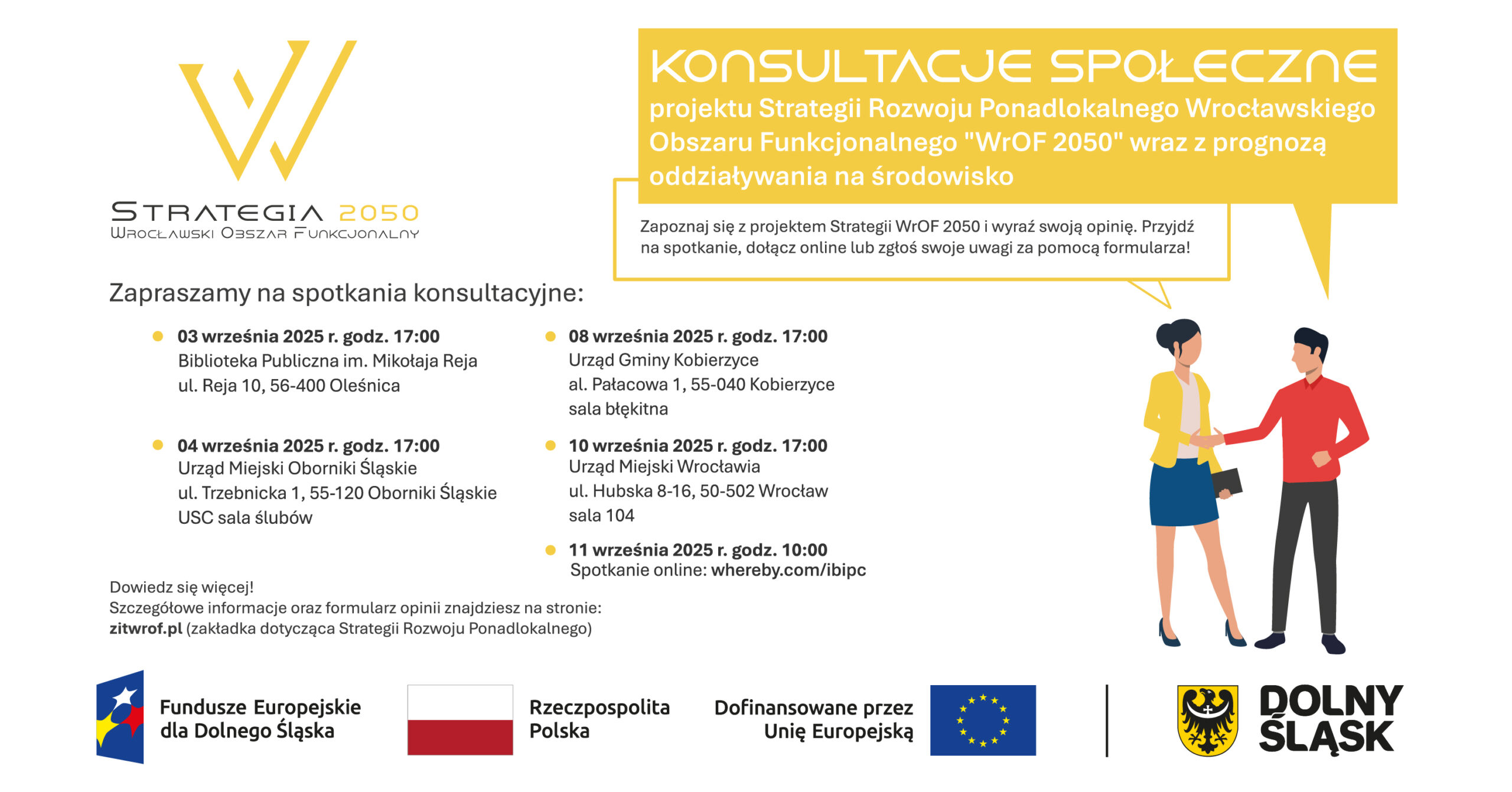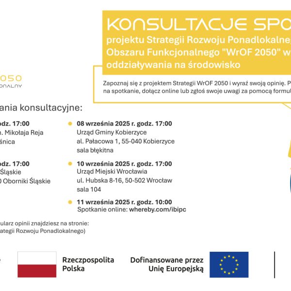 Od dzisiaj trwają konsultacje społeczne dotyczące projektu Strategii Rozwoju Ponadlokalnego Wrocławskiego Obszaru Funkcjonalnego „WrOF 2050” wraz z prognozą oddziaływania na środowisko.