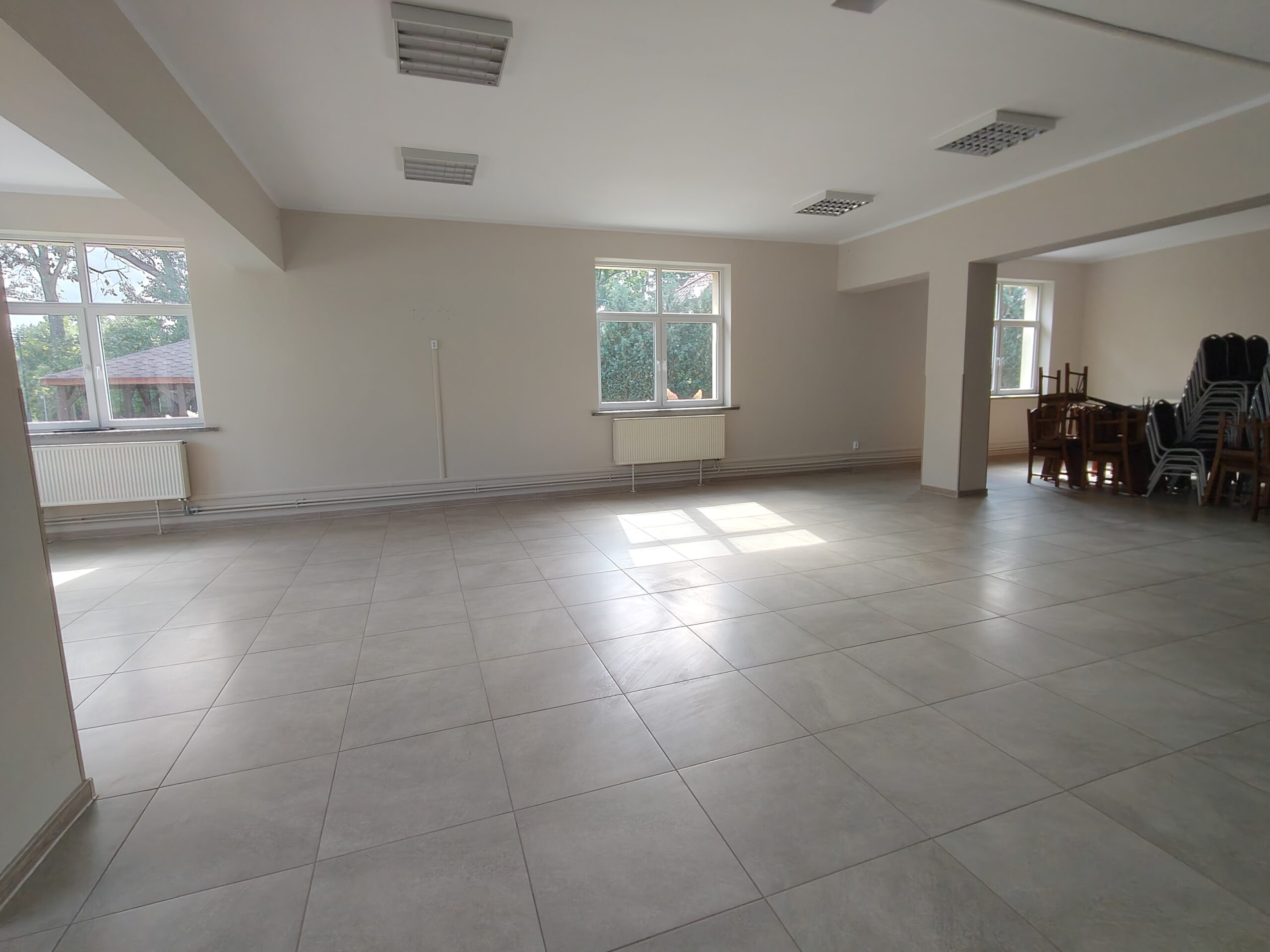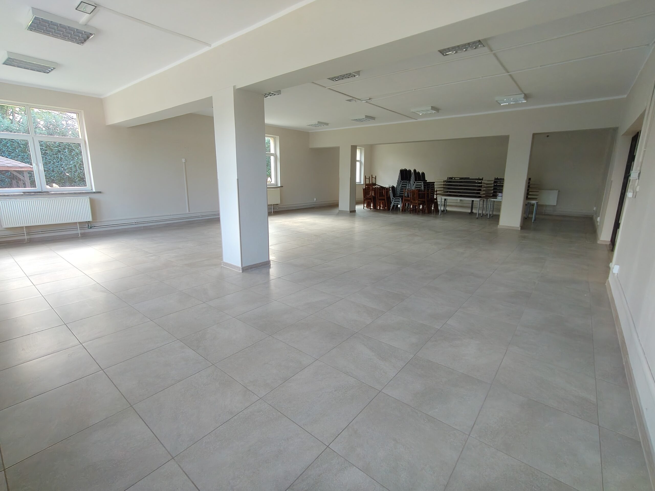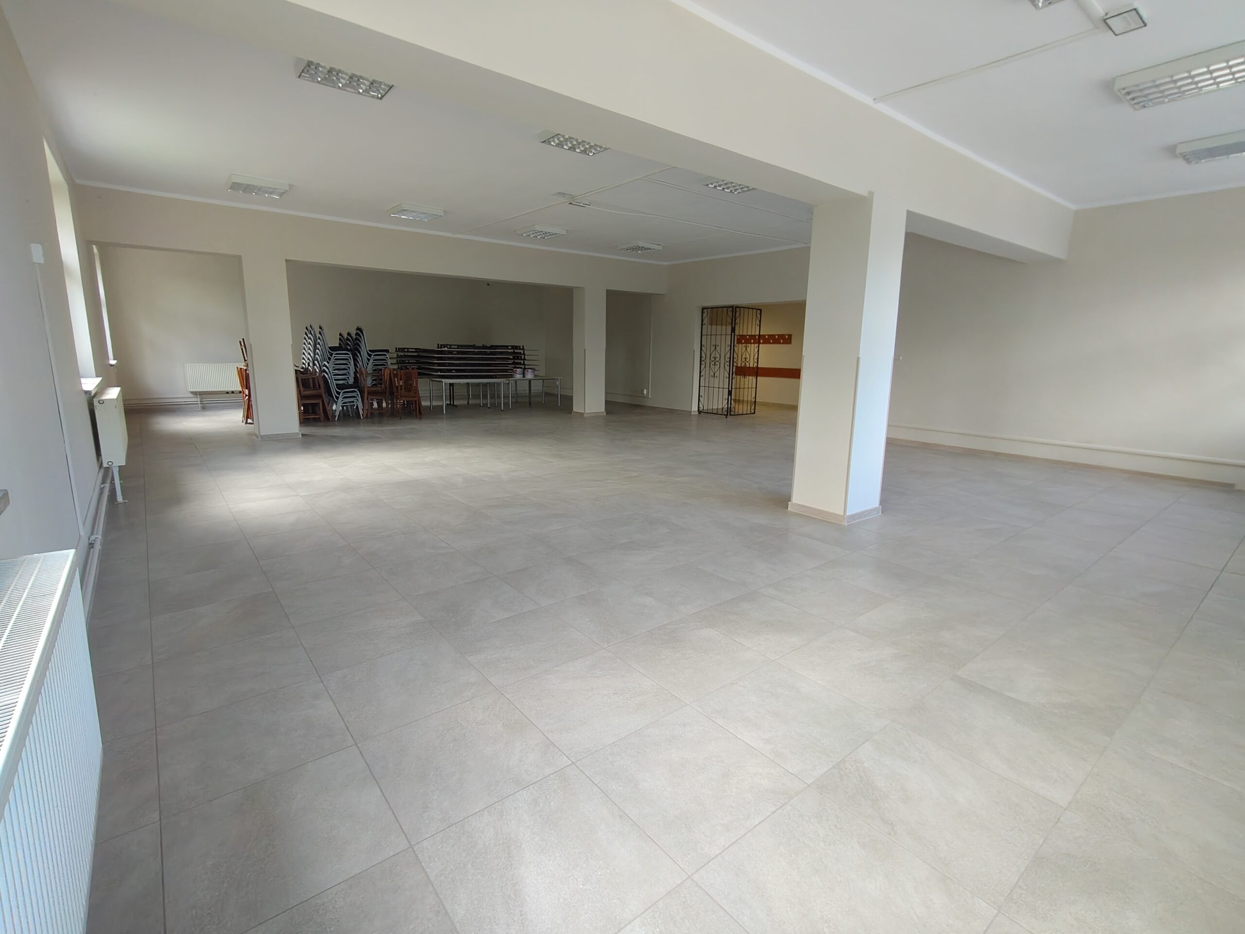 • wyrównanie podłogi i położenie nowych płytek w sali,